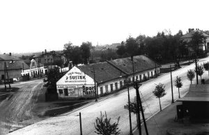 Nová Ulice, dřívější Ječmínkovo náměstí, s později zbouraným domkem "Mexiko"