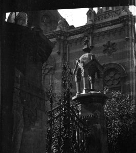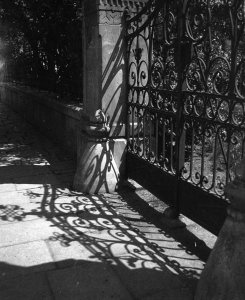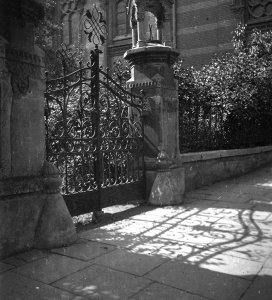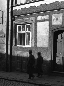 Palachovo náměstí, brána mezi rabínským domem a židovskou synagogou, detail mřížoví a odrazníků (6x6 cm stav: dobrý)