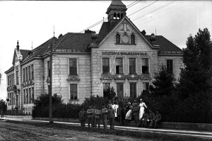 Nová Ulice, Německá obecní škola jako nouzová nemocnice (10x15 cm stav: dobrý)