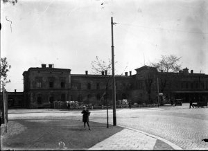 Nové Hodolany, výpravní budova železniční stanice (13x18 cm stav: poškozený)