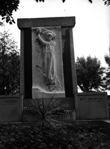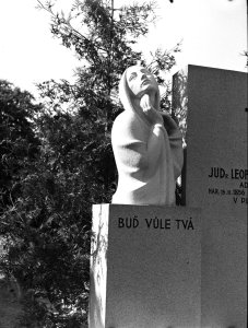 Neředín, Ústřední hřbitov, katolická část, hrobka JUDr. Leopolda Šromoty, detail plastiky (4.5x6 cm stav: dobrý)
