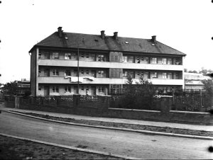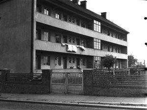 Nová Ulice, městský nouzový dům na rohu ulic Erenburgovy a Pěšinovy (4.5x6 cm stav: dobrý)