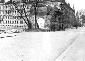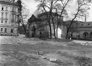 Palachovo náměstí, Terezská brána od j., před úpravou, v popředí terén po ubourané synagoze