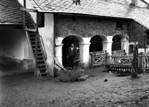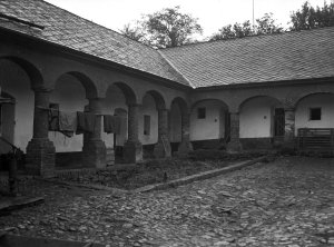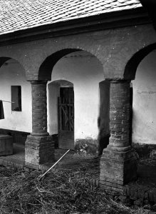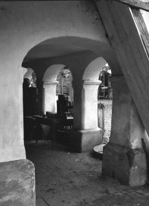 Ostružnická ulice č.o. 3, zadní trakt renesančního domu, schodiště se čtyřmi sloupky (13x18 cm stav: poškozený)